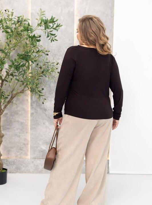 Эта модель прекрасно сочетается с брюками, джинсами, юбками, жакетами, жилетами и кардиганами. Её можно использовать как базовый верх для офисных и повседневных комплектов или как самостоятельную вещь в спокойном женственном образе. В результате вы получаете универсальный, удобный и современный лонгслив, который легко впишется в гардероб и будет уместно смотреться в самых разных сочетаниях.