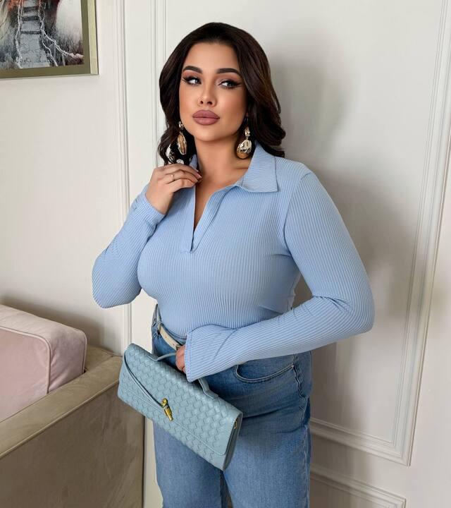 Отдельного внимания заслуживает воротник в стиле поло с открытой горловиной. Именно эта деталь делает модель особенно стильной и заметной, добавляет образу элегантности и легкой уверенности. Такой лонгслив легко сочетать с джинсами, классическими брюками, юбками, шортами с высокой посадкой и даже более строгими вещами, если хочется собрать городской или офисный образ в современном ключе. Он будет уместен на прогулке, в кафе, на встрече, в поездке или в повседневных делах, когда хочется выглядеть красиво без лишних усилий.