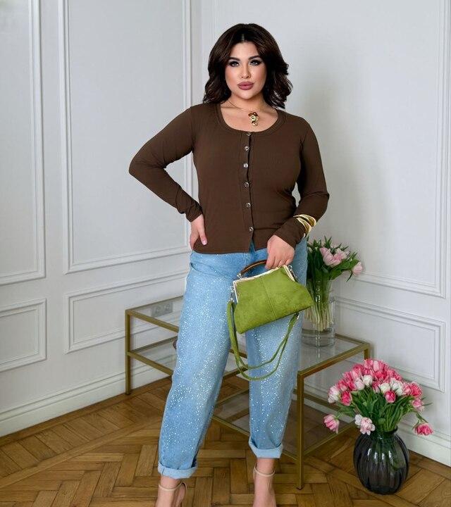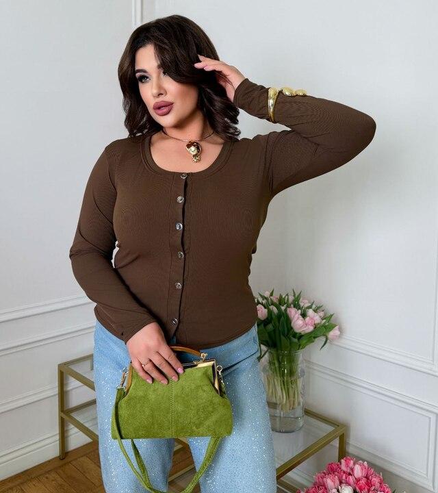 Лонгслив женский из трикотажа рубчик на пуговицах с длинным рукавом весенний k-128426