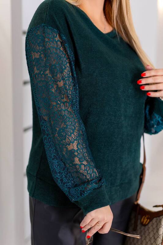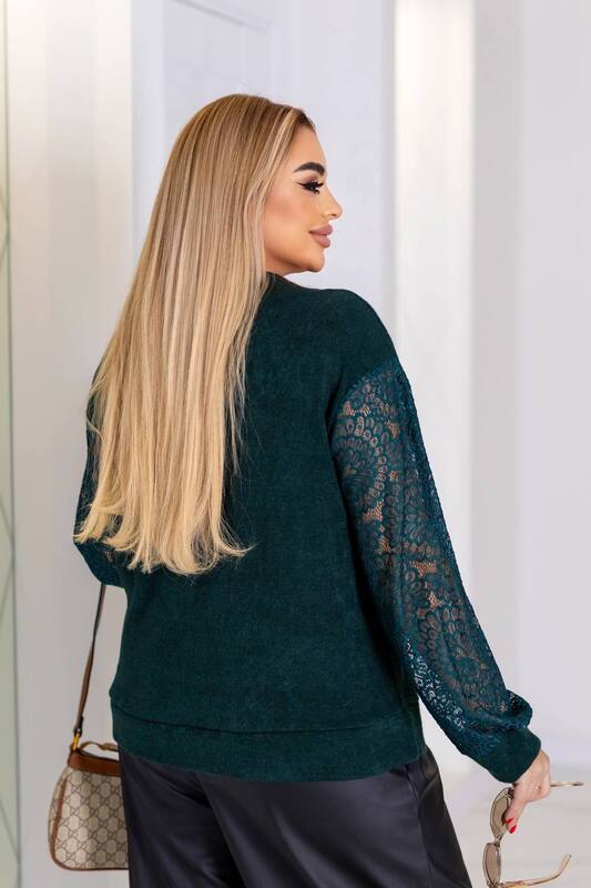 Свитер женский осенне-зимний ангора свободного кроя с ажурными рукавами смарагдовый  k-124674