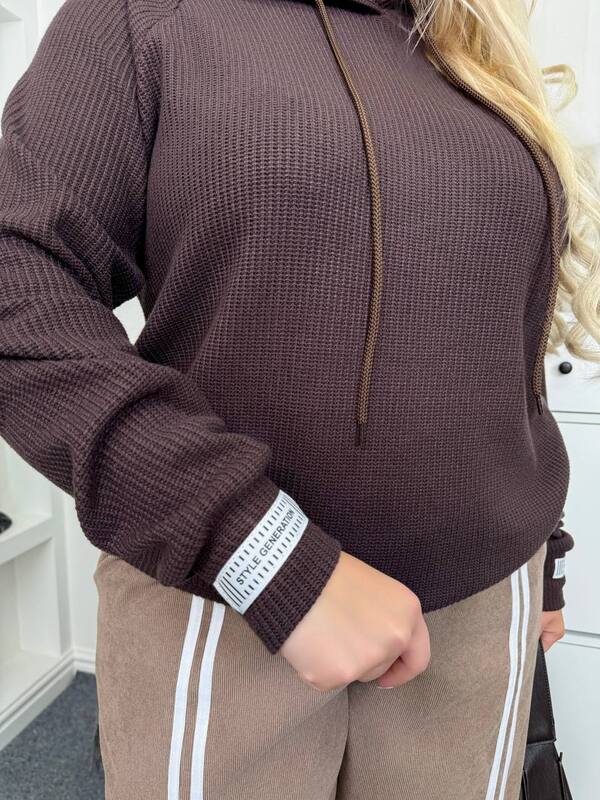 Отзывы о Женская толстовка из вязаной ангоры с капюшоном и нашивками осенне-зимняя k-124403