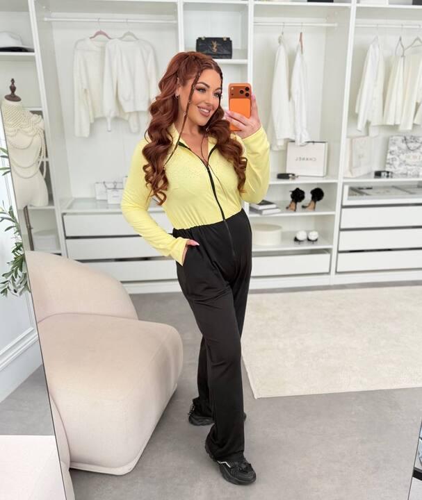 Отдельное внимание привлекает декоративное оформление верхней части. Стразы делают модель более заметной, добавляют ей выразительности и лёгкого нарядного акцента. Благодаря этой детали комбинезон выглядит интереснее обычных базовых вариантов и отлично подходит не только для повседневной носки, но и для случаев, когда хочется выглядеть чуть эффектнее, сохранив при этом комфорт. Такой декор освежает образ и делает вещь более привлекательной визуально.