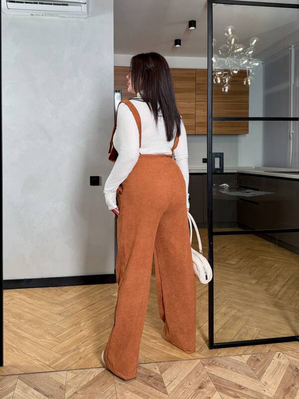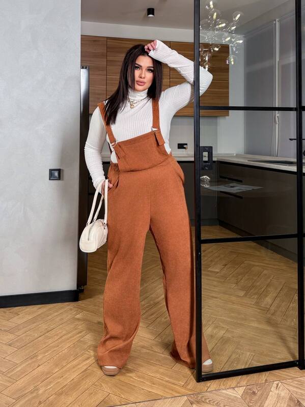 Женский комплект, состоящий из микровельветового комбинезона и гольфа из вискозного рубчика, создан для стильных образов на каждый день. Комбинезон с широкими брюками свободного кроя и регулируемыми бретелями делает образ современным и удобным. Микровельвет придает ткани благородную фактуру, которая смотрится дорого и гармонично, а насыщенный оттенок добавляет яркости и подчеркивает индивидуальность.