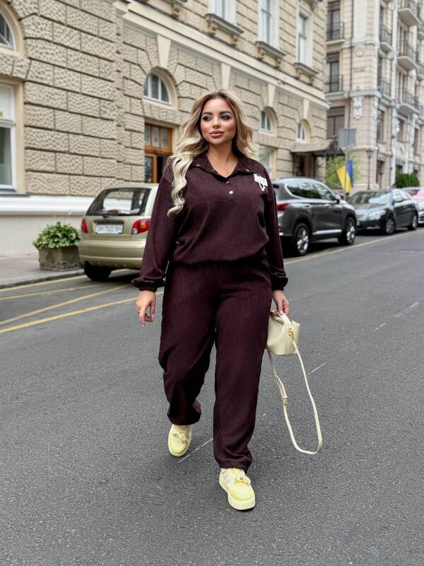 Однотонный глубокий оттенок костюма позволяет легко комбинировать его с различными аксессуарами и верхней одеждой. Этот костюм станет вашим универсальным помощником в создании стильных, практичных и комфортных образов на каждый день.