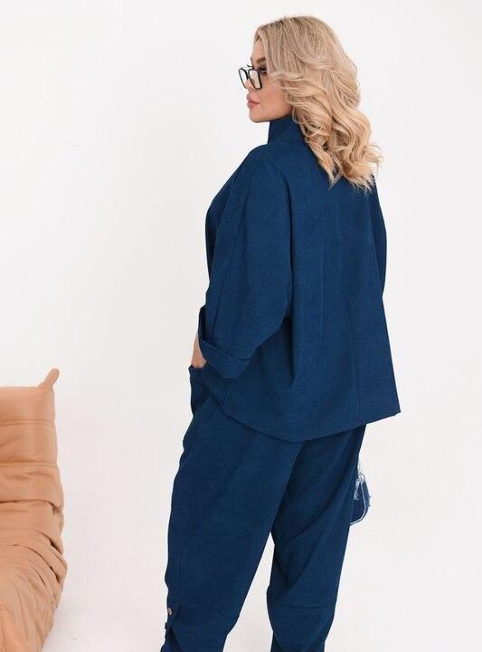 Вельветовая ткань придает костюму мягкость, приятную фактуру и визуальную глубину. Материал выглядит уютно, красиво и дорого, за счет чего комплект смотрится эффектно даже без лишнего декора. Такой костюм можно носить с туфлями, лоферами, ботильонами, кроссовками или другой удобной обувью, меняя настроение образа под ситуацию. Он отлично подойдет для прогулок, встреч, повседневных дел и тех случаев, когда хочется совместить комфорт, свободу движений и действительно стильный внешний вид. Это удачная модель, которая подчеркивает индивидуальность и помогает создавать красивый, расслабленный и уверенный образ.