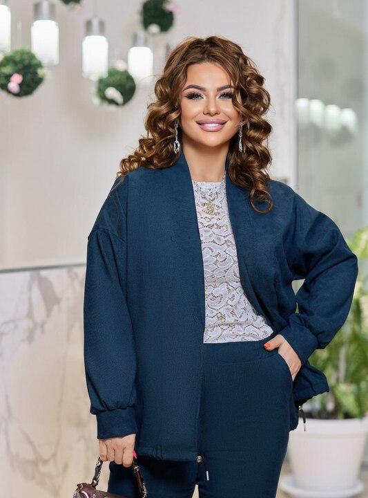 Женский костюм-двойка с жакетом и брюками — это удачное сочетание комфорта, элегантности и универсальности, которое легко вписывается в повседневный гардероб. Комплект смотрится очень аккуратно, собранно и женственно: свободный жакет мягко ложится по фигуре, не утяжеляет силуэт и создает ощущение легкости, а брюки делают образ завершенным и гармоничным. Такой костюм отлично подойдет для женщин, которые хотят выглядеть стильно и уверенно каждый день, не жертвуя удобством.