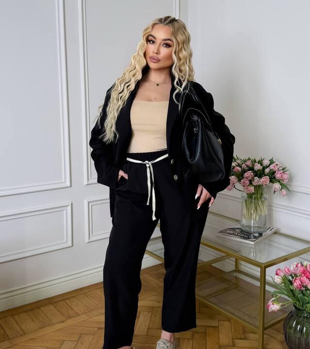 Такой костюм можно носить как единым комплектом, так и по отдельности. Жакет хорошо сочетается с джинсами, юбками и платьями, а брюки легко комбинируются с футболками, блузами, рубашками и лонгсливами. Благодаря этому комплект становится не просто красивой двойкой, а по-настоящему выгодным приобретением для гардероба. Это отличный выбор для женщин, которые хотят выглядеть современно, аккуратно и уверенно, не жертвуя комфортом и удобством в течение всего дня.