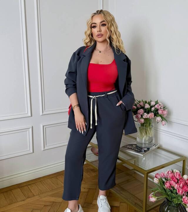 Такой костюм можно носить как единым комплектом, так и по отдельности. Жакет хорошо сочетается с джинсами, юбками и платьями, а брюки легко комбинируются с футболками, блузами, рубашками и лонгсливами. Благодаря этому комплект становится не просто красивой двойкой, а по-настоящему выгодным приобретением для гардероба. Это отличный выбор для женщин, которые хотят выглядеть современно, аккуратно и уверенно, не жертвуя комфортом и удобством в течение всего дня.