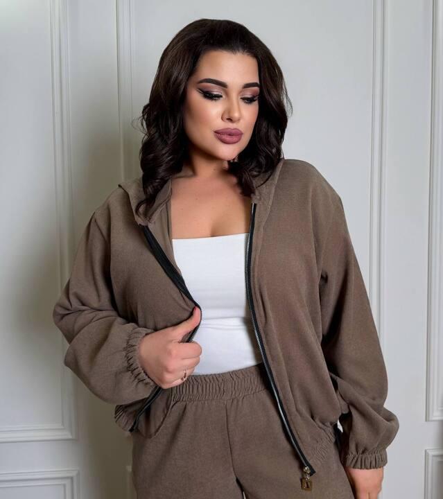 Брюки выполнены в комфортном свободном крое и хорошо садятся по фигуре. Пояс на резинке обеспечивает удобную посадку, а низ на манжетах делает силуэт более собранным и завершенным. Такой фасон идеально подходит для ежедневной носки, так как позволяет чувствовать себя легко и уверенно в движении. Комплект можно носить как готовым образом, так и по отдельности, сочетая верх с джинсами или леггинсами, а брюки — с футболками, топами, лонгсливами или худи. Это удобный, современный и действительно востребованный костюм для тех, кто ценит комфорт, хорошую посадку и стильный повседневный вид.