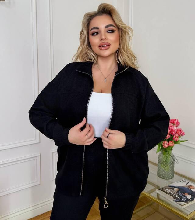 Кофта на молнии делает комплект особенно функциональным и универсальным. Ее удобно носить полностью застегнутой или слегка расстегнутой, сочетая с базовыми топами, майками и футболками. Свободный крой не сковывает движения, обеспечивает комфортную посадку и позволяет чувствовать себя уверенно в течение всего дня. Воротник-стойка добавляет образу аккуратности и делает модель более выразительной, а лаконичный дизайн помогает легко комбинировать костюм с разной обувью и аксессуарами.