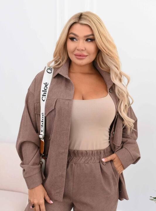 Костюм-двойка женский из хлопкового вельвета с курткой-рубашкой и джоггерами весенний  k-128809