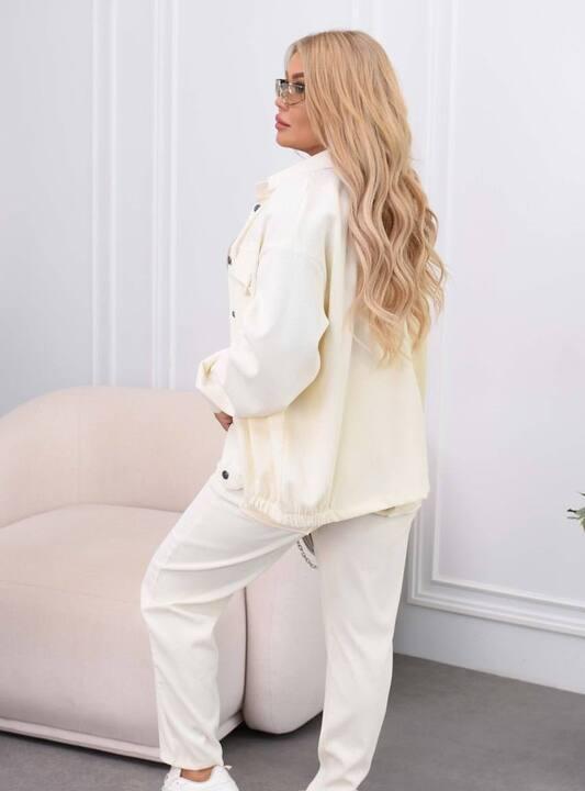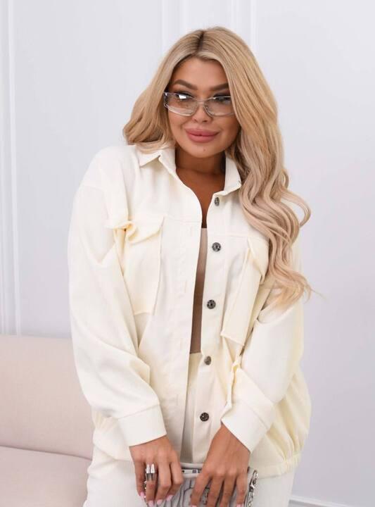 Верх выполнен в формате свободной куртки-рубашки с отложным воротником, застежкой спереди и накладными карманами. Такой фасон смотрится модно, расслабленно и очень актуально, при этом сохраняет аккуратность и делает образ продуманным. Свободная посадка не сковывает движения, красиво смотрится на фигуре и позволяет чувствовать комфорт в течение всего дня. Куртку можно носить как застегнутой, так и расстегнутой поверх базового топа, майки или футболки, создавая разные по настроению сочетания.