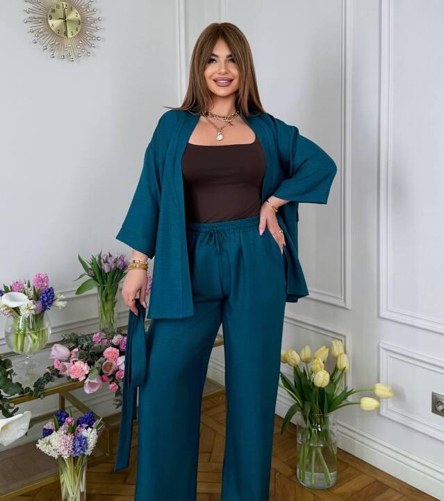 Лен «Бохо» придает костюму красивую фактуру и благородный внешний вид. Материал смотрится натурально, стильно и уместно в современном базовом гардеробе. Такой комплект легко сочетать с базовыми топами, майками, футболками, лаконичной обувью на низком ходу, мюлями, босоножками или туфлями. Это отличный выбор для прогулок, повседневных дел, неформальных встреч, отдыха и поездок, когда особенно важно выглядеть красиво, чувствовать свободу движений и получать удовольствие от удобного, стильного и хорошо продуманного образа.