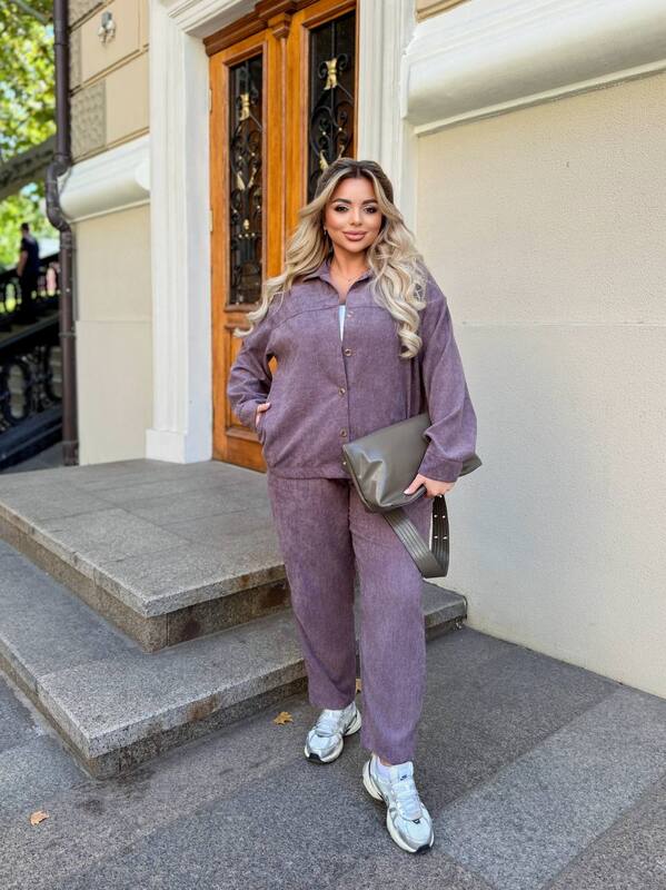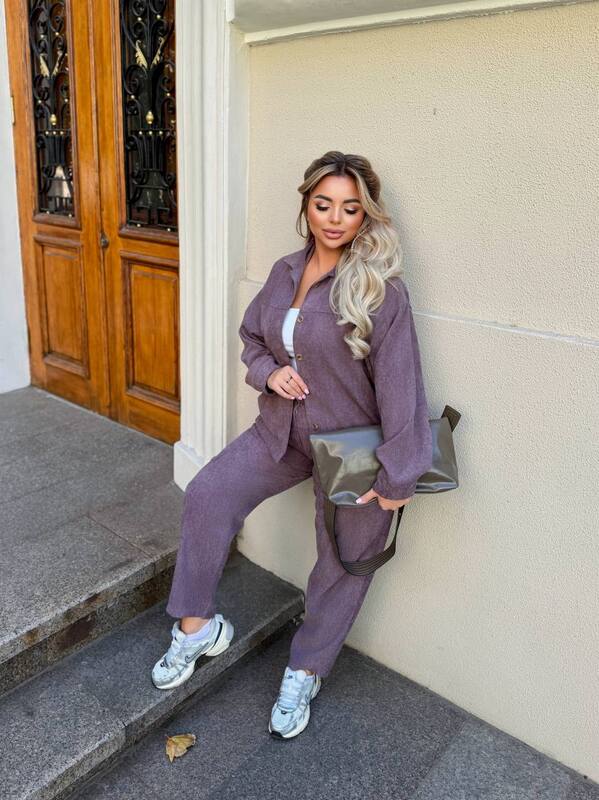 Такая модель универсальна: её можно надеть для прогулок, повседневных встреч, офиса в стиле casual или smart-casual. Вельвет всегда в тренде и остаётся одним из самых востребованных материалов, добавляя образу глубину и стиль. Этот костюм легко адаптировать под разные ситуации, просто меняя аксессуары и обувь.