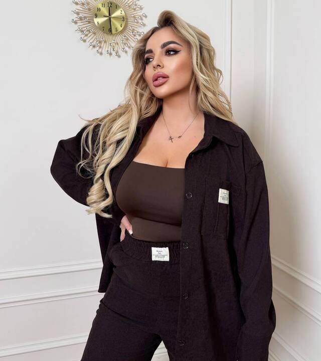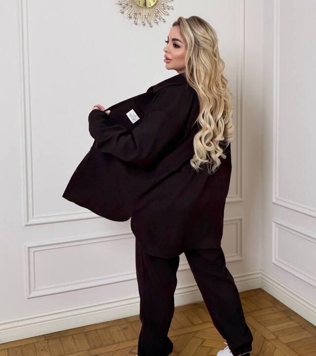 Этот костюм — отличный вариант для тех, кто любит удобные повседневные вещи с современным характером и аккуратной посадкой. Комплект выглядит стильно, расслабленно и при этом очень собранно, поэтому легко вписывается в повседневный гардероб. Свободная рубашка делает образ более актуальным и добавляет ощущение лёгкости, а джоггеры с высокой посадкой подчёркивают комфорт и практичность модели. Такой комплект отлично подходит для прогулок, поездок, встреч, повседневных дел и тех случаев, когда хочется выглядеть современно, не жертвуя удобством.