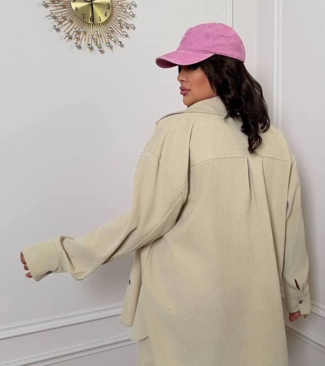 Рубашка свободного кроя застёгивается на пуговицы и дополнена рабочими карманами, что делает её не только красивой, но и функциональной. Её можно носить как самостоятельный верх, а можно использовать как второй слой поверх топа, майки или футболки, создавая более расслабленные и модные сочетания. Удлинённая спинка делает посадку ещё более удобной и помогает рубашке красиво смотреться на фигуре. Свободный крой не сковывает движения, поэтому в таком комплекте действительно комфортно в течение дня.