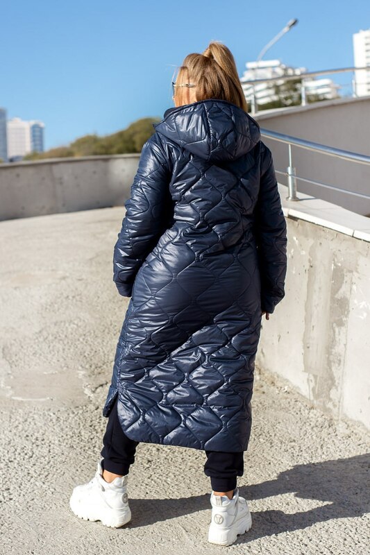 Куртка женская длинная стёганая из плащевки Лаке с капюшоном и утеплителем синтепон 200 осенне-зимняя k-124650