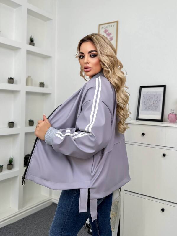 Куртка имеет свободный крой с лёгким оверсайз-эффектом, что делает её комфортной и универсальной для разных типов фигур. Центральная застёжка-молния подчёркивает современный стиль и удобство, а спортивные полосы на рукавах добавляют динамичности и актуальности образу. Манжеты и нижняя часть рукавов выполнены из плотной резинки, которая фиксирует форму и защищает от холода. Удлинённая спинка и удобные прорезные карманы делают модель практичной и комфортной в повседневной носке.