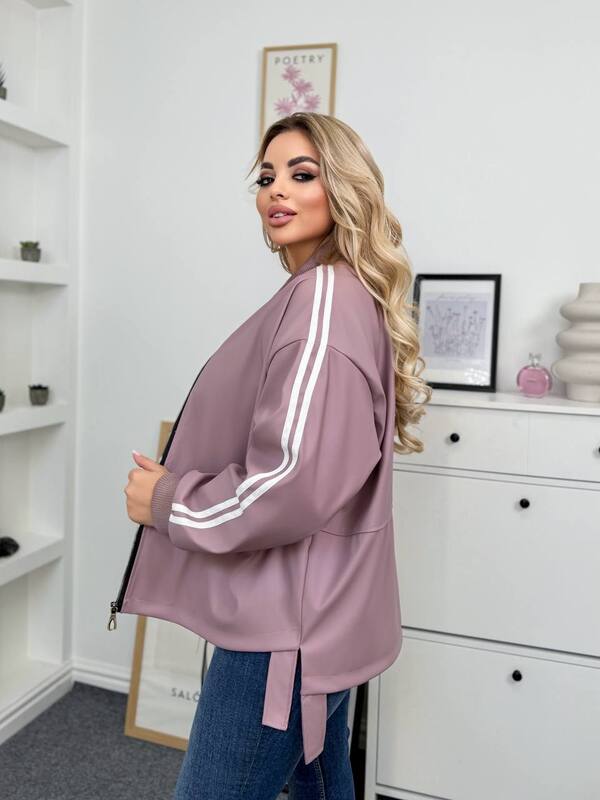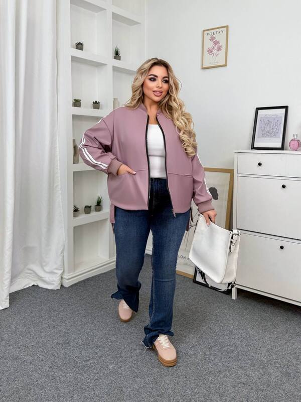 Куртка выполнена в свободном, немного оверсайз-крое, который гармонично подходит для любого типа фигуры. Центральная молния с контрастной отделкой добавляет динамики и делает модель ещё более выразительной. Рукава с манжетами на резинке обеспечивают удобную посадку и защищают от ветра, а декоративные полосы по рукавам придают спортивный и современный акцент. Удлинённая спинка и удобные карманы делают модель практичной и функциональной для повседневной носки.