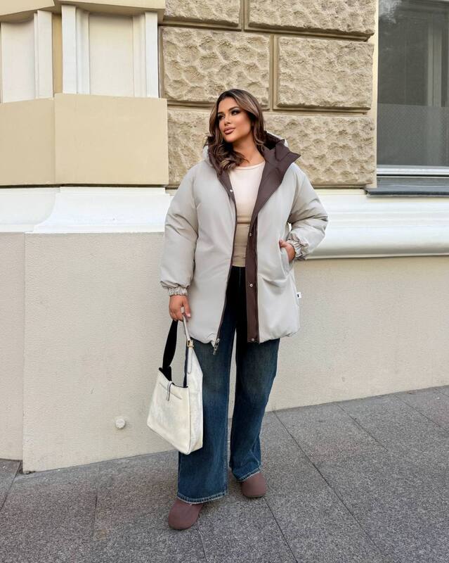Высокий воротник и объемный капюшон обеспечивают дополнительную защиту и уют даже в самую непогоду. Удлиненная длина по спинке (81–85 см) идеально подходит для сохранения тепла и удобства в повседневных образах. Эта куртка легко сочетается как с джинсами и кроссовками, так и с более женственными образами — платьями и сапогами, что делает её универсальным элементом гардероба.