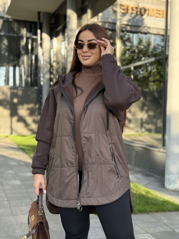 Модель универсальна и легко вписывается в повседневный гардероб: её можно сочетать с джинсами, леггинсами, спортивными костюмами или трикотажными платьями. Куртка-кардиган подойдёт для прогулок на свежем воздухе, городских образов и даже для поездок за город, когда особенно важны комфорт и тепло.