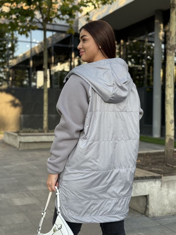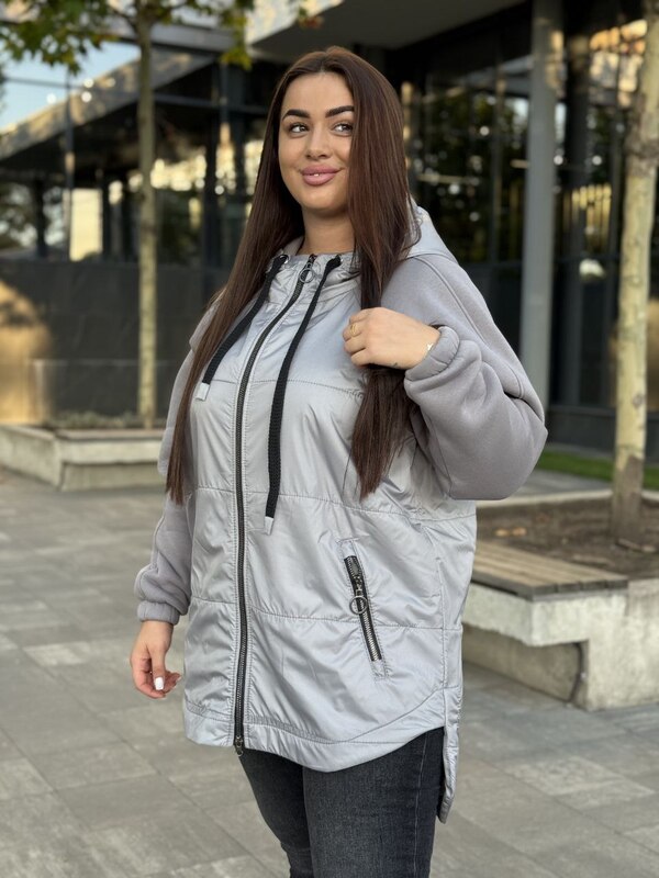 Модель подойдёт для повседневных прогулок, городских образов, путешествий или активного отдыха. Благодаря универсальному серому оттенку, куртка-кардиган легко комбинируется как с джинсами, так и со спортивными костюмами или трикотажными платьями.