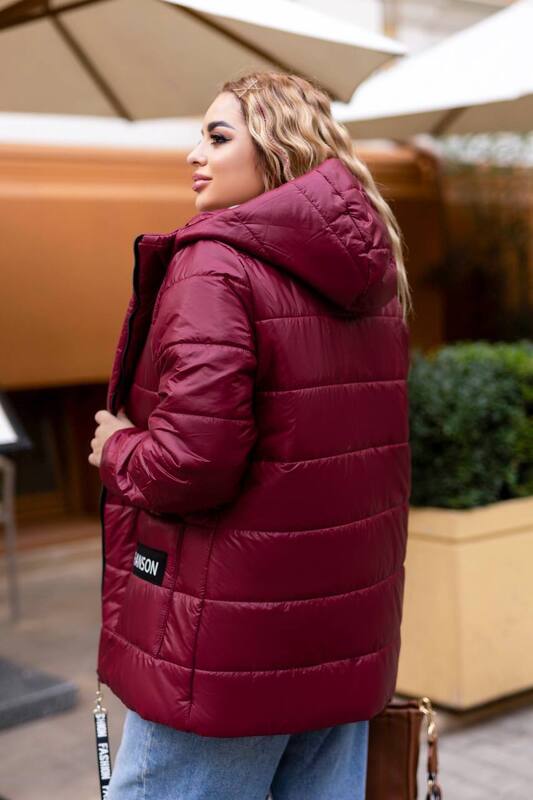 Отзывы о Куртка женская демисезонная бордовая стёганая с капюшоном из плащевки утеплённая синтепоном средняя k-123709