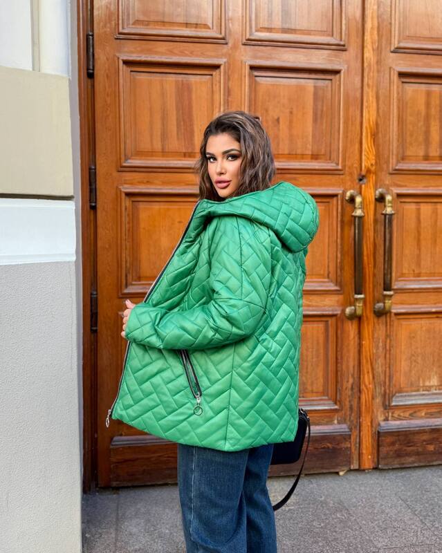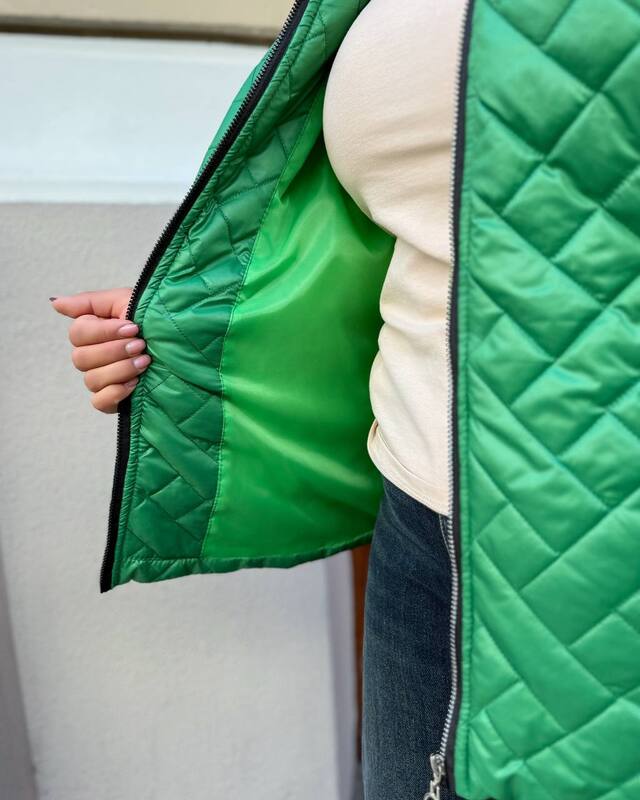 Женская стеганая куртка в зеленом цвете — яркий и практичный вариант для осени. Модель выполнена из плащевки лаке на утеплителе силикон 100 с подкладкой саржа 250, благодаря чему изделие надежно сохраняет тепло и при этом остается легким и удобным в носке.