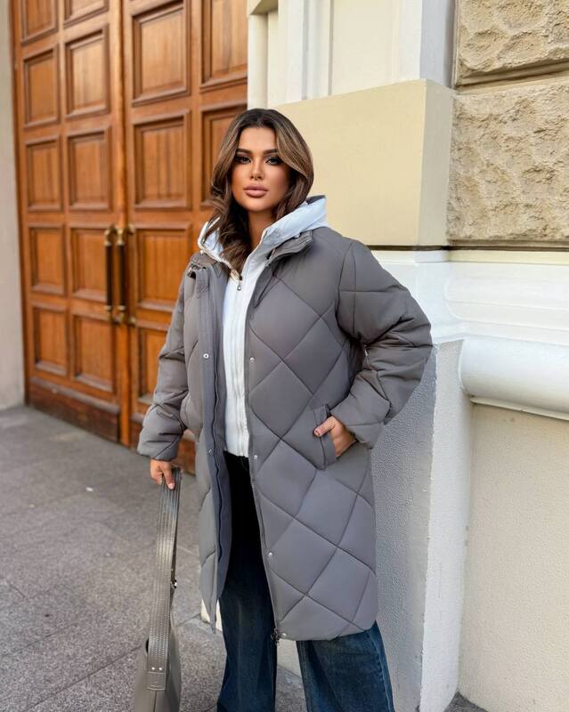 Модель имеет удлинённый фасон со спинкой длиной 98–102 см, что идеально подходит для холодного сезона, создавая дополнительную защиту от мороза. Высокий воротник защищает от ветра, а съемный капюшон на молнии позволяет адаптировать куртку под разную погоду и стиль.