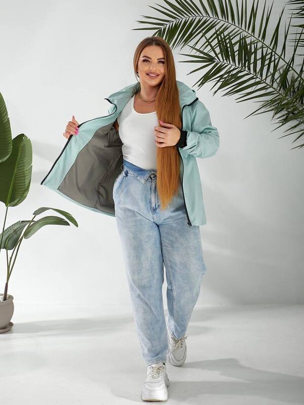 Ветровка женская из плащёвки Эммі на подкладке с капюшоном и кулиской осенняя  k-123753