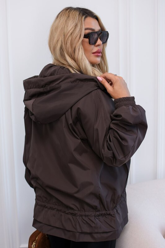 Ветровка женская из плащёвки Эммі на подкладке с кулиской и капюшоном осенняя  k-123758