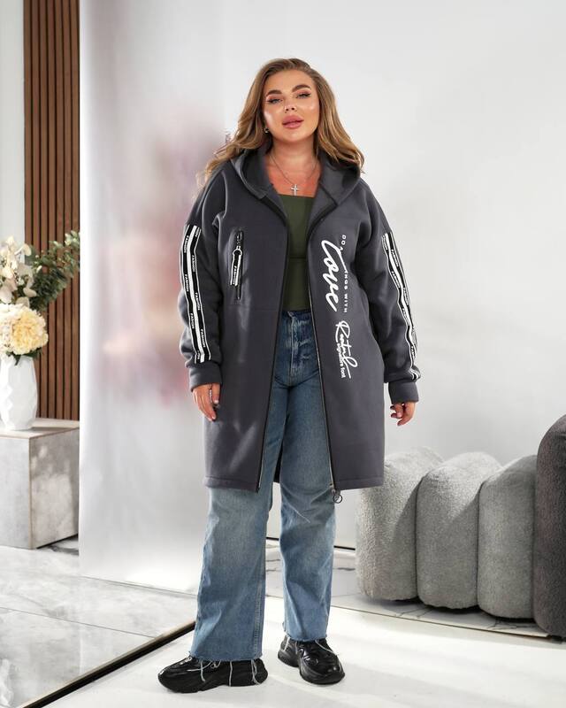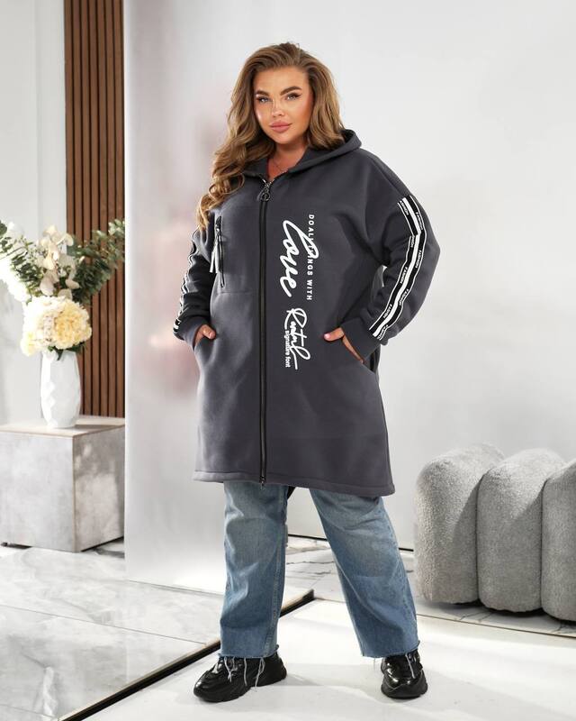Особое внимание привлекают контрастные лампасы на рукавах и крупная надпись на полочке, которые подчеркивают актуальный городской стиль и придают модели динамичность. Свободный крой позволяет комфортно двигаться, а также хорошо сидит на фигуре, не сковывая и добавляя ощущения уюта. Такой кардиган идеально подойдёт для женщин, ценящих удобство, стиль и универсальность.