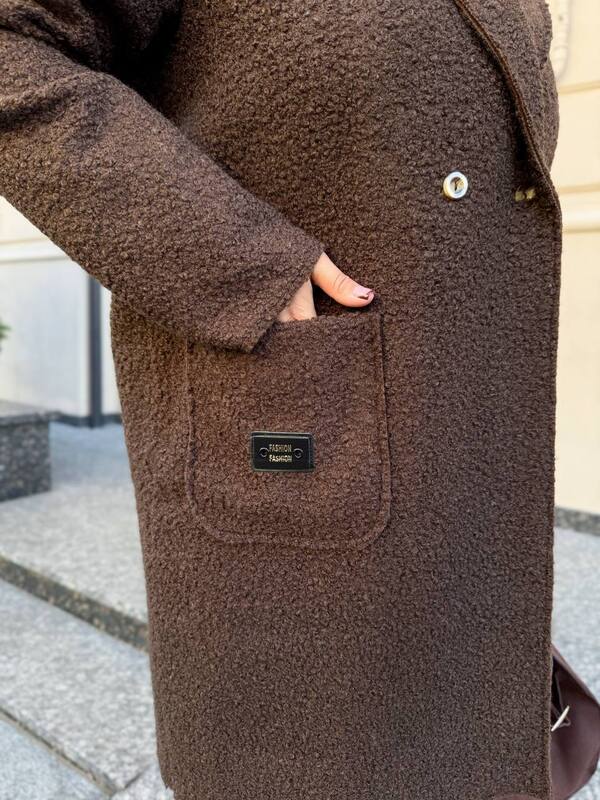 Пальто имеет свободный крой, который красиво садится на фигуру любого типа, не стесняет движений и позволяет комфортно надевать даже на объемные свитеры. Двубортная застежка и аккуратный лацкан придают образу элегантность, а накладные карманы добавляют функциональности и практичности.