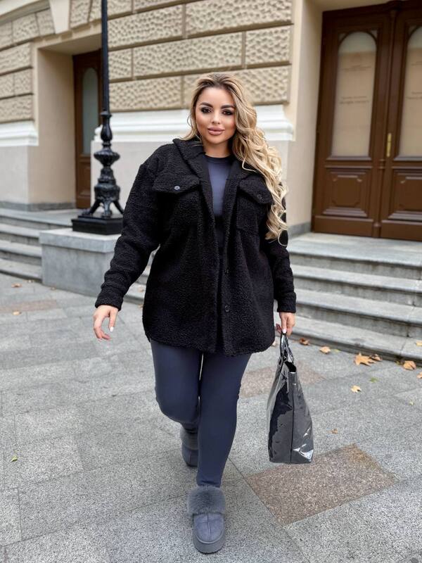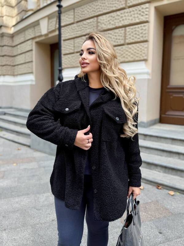 Рубашка прекрасно сочетается с джинсами, лосинами, спортивными костюмами или трикотажными брюками. Её можно носить как лёгкое пальто в демисезонный период или как утеплённую рубашку для повседневных выходов. Универсальный чёрный цвет делает её практичной и легко комбинируемой с другими элементами гардероба. Это изделие станет незаменимым вариантом для прохладных дней, объединяя комфорт, стиль и женственность.