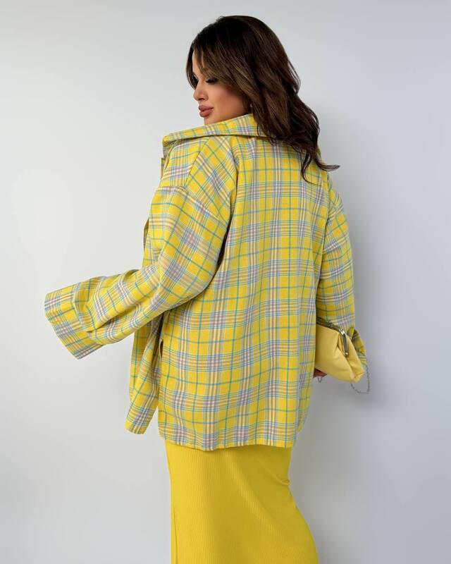 Рубашка в клетку выполнена в свободном оверсайз-крое, поэтому добавляет образу расслабленность, стильную небрежность и делает комплект особенно актуальным. Её можно носить нараспашку, набрасывать на плечи, завязывать на талии или использовать как самостоятельную вещь с джинсами, брюками и юбками. За счёт этого один комплект даёт сразу несколько удачных вариантов на каждый день.