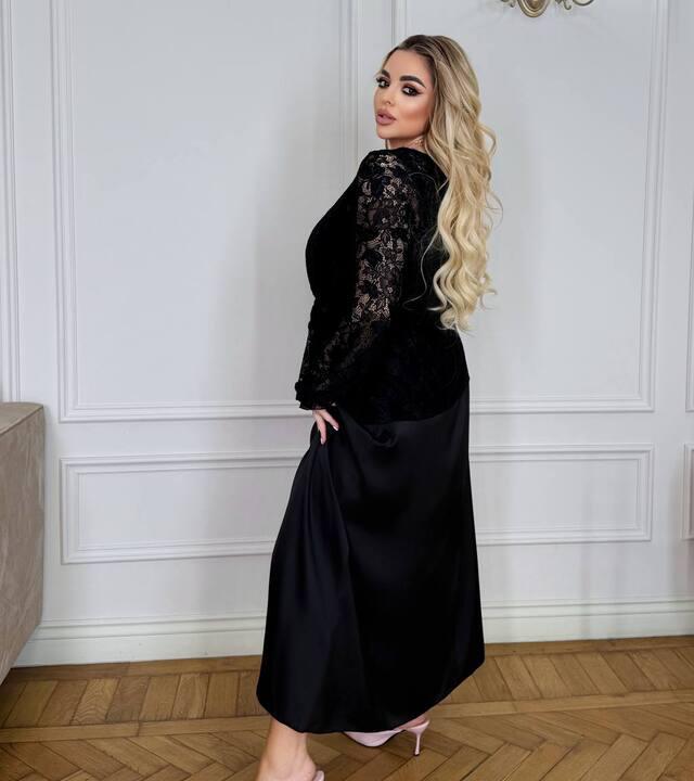 Ткань шёлк дабл в сочетании с кружевом делает модель особенно эффектной. Материал смотрится красиво, мягко ложится по фигуре и помогает сохранить ощущение комфорта в носке. Такой комплект отлично подойдет для праздника, ужина, фотосессии, встречи, торжественного мероприятия или выхода, когда хочется выглядеть женственно, стильно и безупречно. Это платье-двойка для тех, кто ценит элегантные вещи с красивыми деталями, выразительным силуэтом и по-настоящему нарядным настроением.