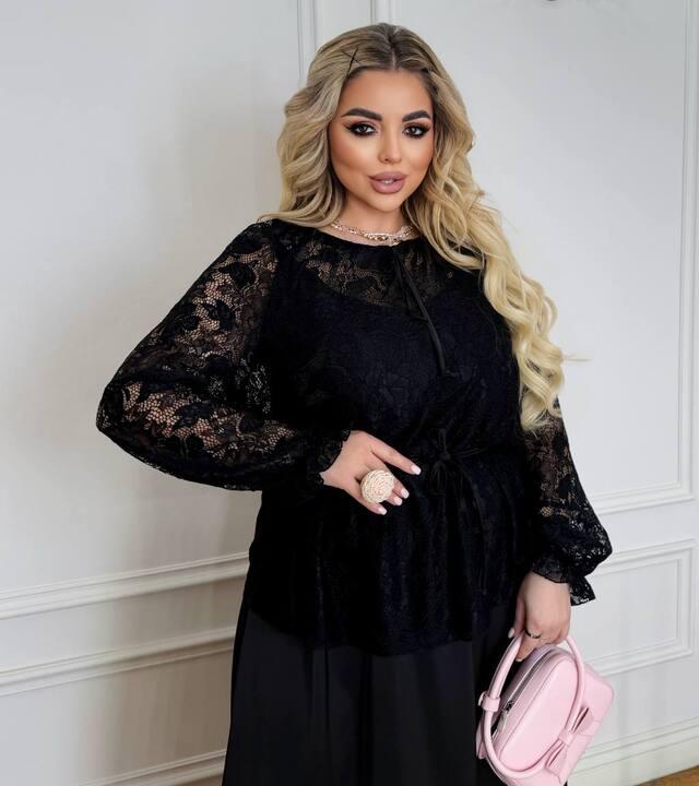 Отдельного внимания заслуживают рукава. Они объемные, с мягкой посадкой, поэтому делают образ особенно благородным и выразительным. Кружевная фактура придает комплекту утонченность, легкость и ту самую дорогую визуальную подачу, которая делает вещь по-настоящему заметной. Материал красиво смотрится в движении, добавляет образу глубины и делает комплект подходящим как для торжественных событий, так и для красивых выходов, праздничных встреч, семейных мероприятий и особенных случаев.
