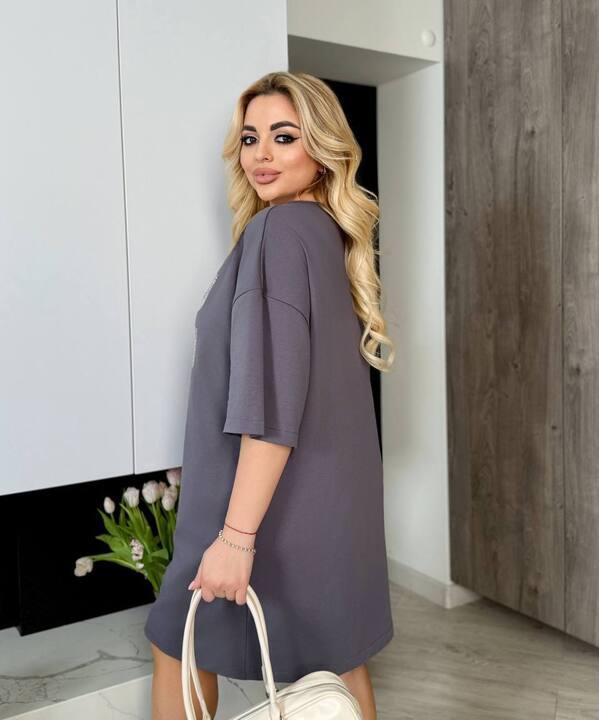 Платье-футболка женское из кулира со стразами оверсайз повседневное весеннее  k-128554