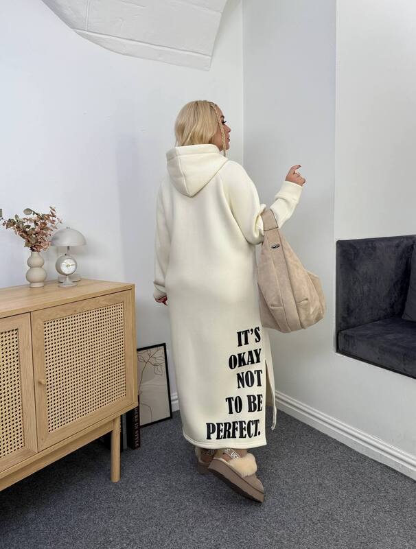 Платье-худи легко комбинируется с утеплёнными жилетами, пуховиками и обувью на плоской подошве или платформе. Оно подчеркнёт вашу индивидуальность и подарит ощущение комфорта и уверенности в любую погоду.