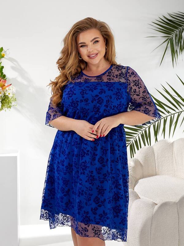 Элегантное женское платье из креп дайвинга с верхним слоем из сетки флок — это сочетание утончённости и комфорта, идеально подходящее для особых случаев и праздничных выходов. Лёгкая, воздушная ткань красиво ложится по фигуре, создавая нежный силуэт, а бархатный узор флока придаёт образу роскошный акцент.