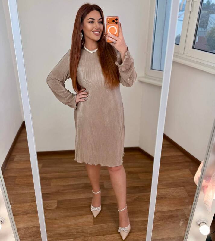 Платье идеально подойдёт для офиса, встреч, прогулок и праздничных мероприятий. Оно прекрасно комбинируется с каблуками, сапогами или ботильонами, а при желании можно дополнить ремнём для акцента на талии. Эластичная плиссированная ткань не мнётся, не требует особого ухода и сохраняет форму даже после множества стирок. Универсальный дизайн позволяет легко создавать как повседневные, так и вечерние образы. Платье дарит ощущение уюта, женственности и уверенности, подчёркивая природный шарм и стиль своей обладательницы.