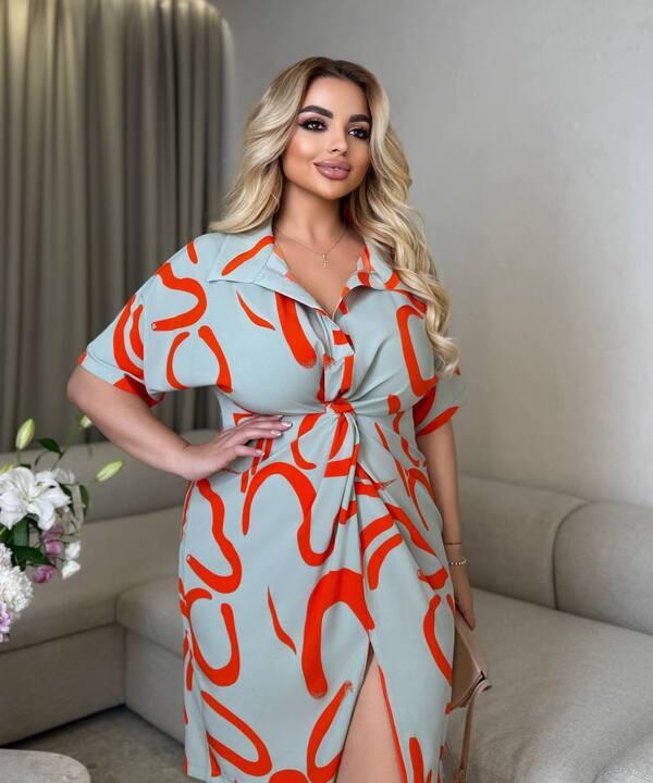 Отдельного внимания заслуживает принт. Абстрактный рисунок делает платье заметным, модным и более характерным, поэтому даже без большого количества украшений образ выглядит завершенным и интересным. Короткие рукава добавляют удобства и делают модель особенно удачной для теплого сезона. Длина смотрится универсально, позволяя носить платье и в повседневных выходах, и в более элегантных городских образах. Такое платье легко сочетать с босоножками, туфлями, сумками лаконичной формы и минималистичными украшениями.