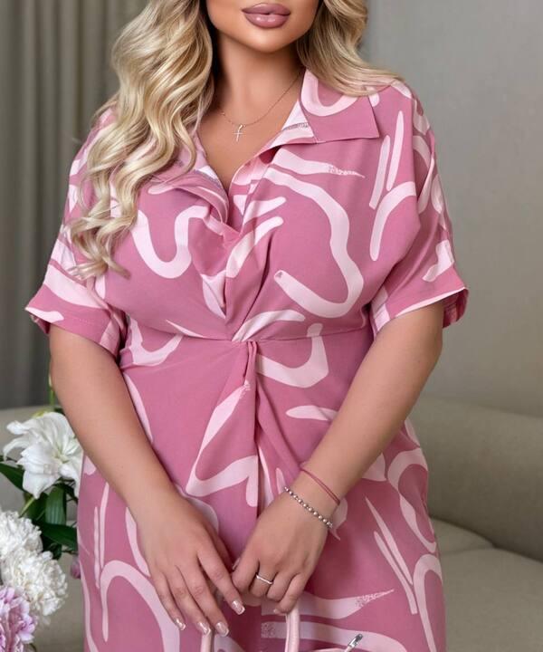 Платье-рубашка женское из софта с абстрактным принтом и драпировкой на талии миди весеннее k-128393