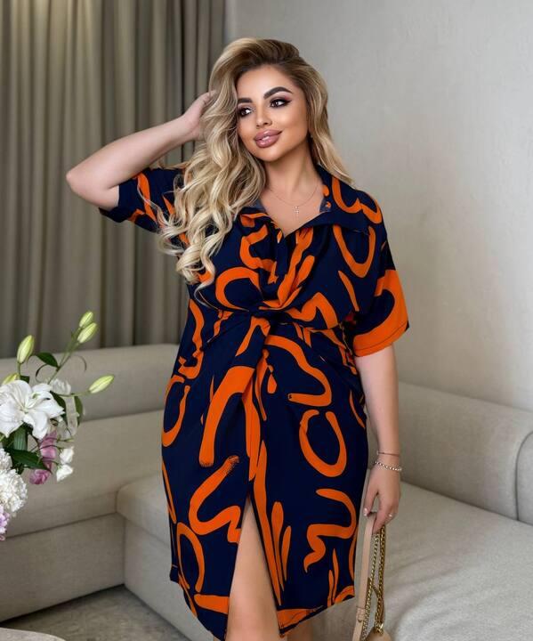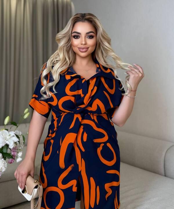 Отзывы о Платье-рубашка женское из софта с абстрактным принтом и драпировкой на талии миди весеннее k-128394