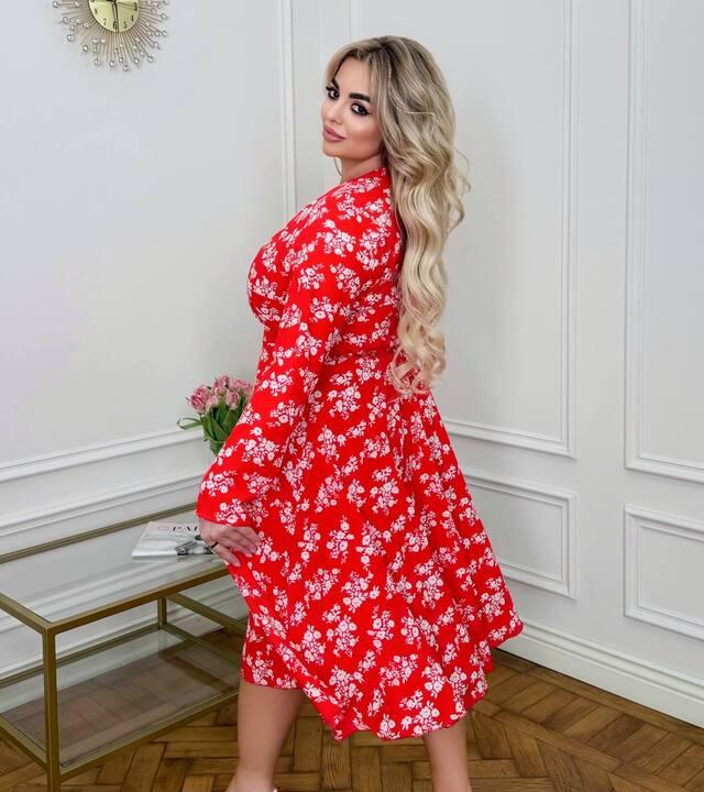 Особую выразительность этой модели придаёт цветочный принт. Он смотрится нежно, романтично и очень женственно, делает платье более живым и добавляет образу мягкое весеннее настроение. Верх оформлен аккуратно и элегантно, линия талии выглядит красиво и гармонично, а резинка сзади помогает добиться более удобной посадки и делает силуэт ещё более привлекательным. Расклешённая юбка красиво движется при ходьбе, добавляет образу лёгкость и делает платье особенно эффектным и изящным.
