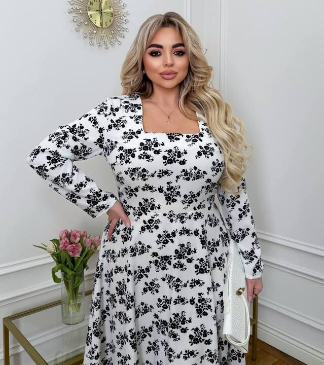 Платье женское из софта миди с цветочным принтом расклешенное на резинке весеннее k-128487