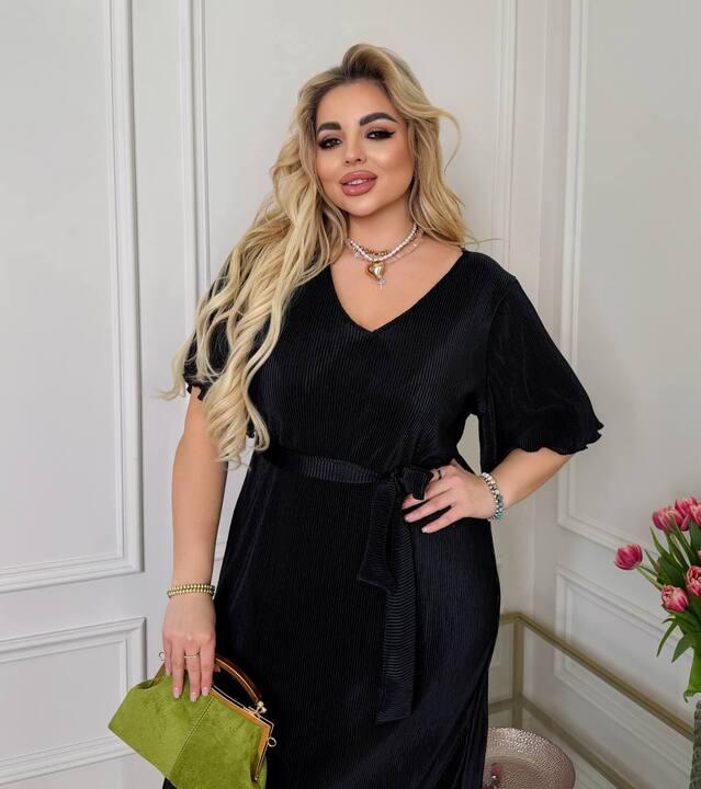 Изделие выполнено из ткани плиссе, благодаря чему платье смотрится очень эффектно в движении и красиво ложится по фигуре. Фактура материала придает образу изысканность, визуальную легкость и делает модель более интересной, чем обычные повседневные варианты. Ткань мягко струится, создает аккуратный силуэт и добавляет образу ту самую женственную плавность, которая всегда выглядит выигрышно.