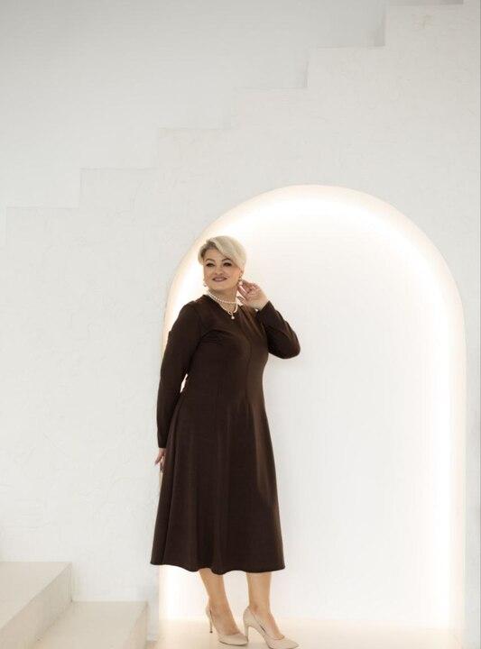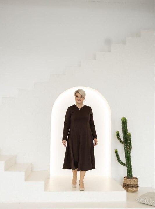 Такую модель можно носить самостоятельно, а также сочетать с жакетом, кардиганом, легкой курткой, лаконичной сумкой и базовыми украшениями. Платье уже само по себе смотрится цельно и выразительно, поэтому не требует сложных дополнений. Это именно тот вариант, который хочется иметь в гардеробе для уверенных, удобных и женственных образов на каждый день, когда важны и красота посадки, и свобода движений, и универсальность вещи.