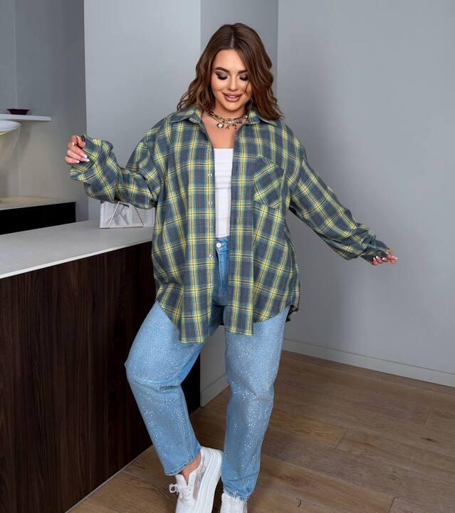 Модель выполнена в свободном крое, поэтому рубашка мягко садится по фигуре, не сковывает движения и создает комфортный объемный силуэт. Классический воротник делает образ более собранным, а длинные рукава с манжетами на пуговицах добавляют практичности и завершенности. Застежка на пуговицы позволяет носить рубашку в разных вариантах: полностью застегнутой, как самостоятельный верх, или расстегнутой поверх футболки, топа, майки, лонгслива или водолазки. За счет этого модель легко адаптируется под разный стиль и сезонные сочетания, а также помогает создавать множество удобных повседневных образов.
