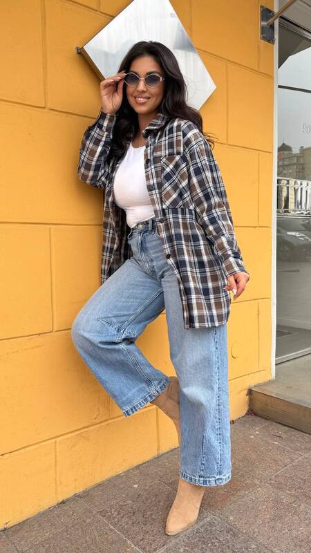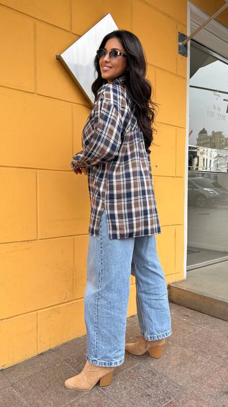 Клетчатый рисунок в сине-коричневых тонах подчеркивает актуальность изделия, придавая образу стильный и современный характер. Такая рубашка станет незаменимой частью базового осеннего гардероба, подходя как для повседневных прогулок, так и для неформальных встреч.